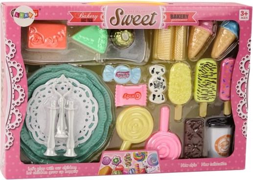 Uroczy zestaw dla małych cukierników przenosi do świata fantazji i kawiarnianej zabawy. Znajdziesz w nim gofry, ciasteczka, lody na patyku, gałki lodów, lizaki, babeczki oraz kubek na kawę, a przede wszystkim trzypoziomową paterę o wysokości około 25 cm. Realistyczne detale i słodkie kolory wspierają kreatywną zabawę, rozwój umiejętności społecznych i rolę „właściciela cukierni”. Bezpieczna zabawka z certyfikatem CE i normą EN71, odpowiednia dla dzieci od 3 lat.