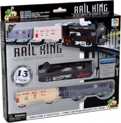 Poczuj klimat klasycznej kolei z tym stylowym zestawem pociągu na baterie. Zestaw zawiera lokomotywę, dwa wagony oraz tory, które tworzą okrąg o średnicy 67 cm (długość trasy 210 cm). Pociąg jest wyposażony w efekty świetlne i dźwiękowe dla jeszcze bardziej realistycznych wrażeń.