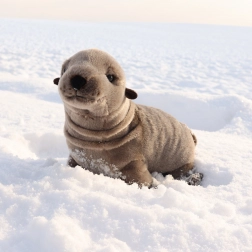 Pluszowy lew morski ma realistyczne detale i kolory, które przypominają prawdziwego lwa morskiego.