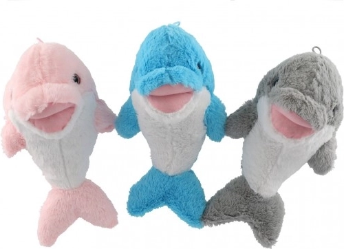 Pluszowe delfiny dostępne są w różnych kolorach. Wybierz pomiędzy różowym, niebieskim a szarym według preferencji Twojego dziecka.