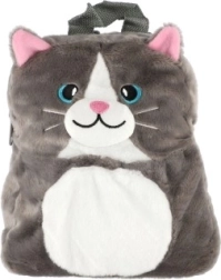 Uroczy i praktyczny pluszowy plecak w kształcie kotka ucieszy każde dziecko. Dzięki mięciutkiemu materiałowi, kompaktowym wymiarom 23 × 26 cm oraz regulowanym szelkom jest idealny do przedszkola, na spacery i wycieczki. Dostępny w 2 wersjach kolorystycznych (szarej i czarno-białej). Odpowiedni dla dzieci od 3 lat.