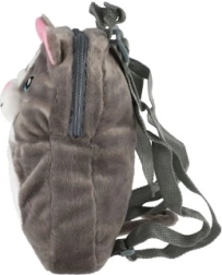 Plecak jest lekki, wygodny i ma regulowane szelki naramienne, które zapewniają prawidłowe ułożenie na plecach. Do wyboru są dwa kolory – szary z niebieskimi oczkami lub czarno-biały z różowymi uszkami. Idealny do przedszkola, na plac zabaw, wycieczki i podróże.