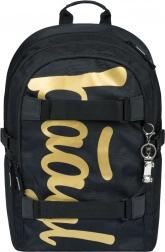 Stylowy szkolny zestaw Baagl Skate Gold zawiera plecak, piórnik, worek na strój gimnastyczny, teczkę na zeszyty oraz portfel. Oferuje ergonomiczny design i praktyczne funkcje dla wygodnego i bezpiecznego dnia w szkole.