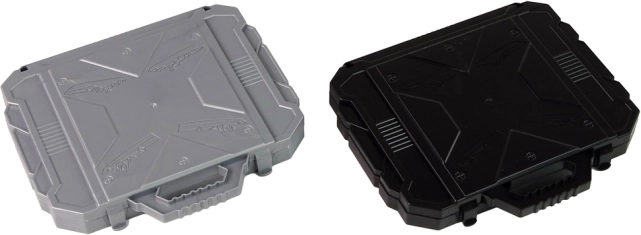Otwierana walizeczka z dwiema siatkami do rozmieszczania statków i zaznaczania trafień/pudeł. Wszystko trzyma się razem i nic się nie zgubi – idealna w domu i w podróży.