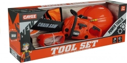 Duży zestaw: piła, kask, okulary i rękawice