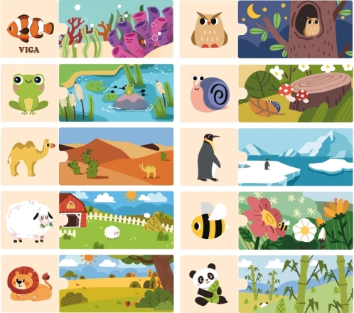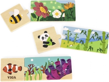 Te logiczne puzzle marki VIGA są idealnym narzędziem dla rozwoju dziecięcego myślenia logicznego i wyobraźni. Gra polega na poprawnym łączeniu 20 kolorowych elementów, które razem tworzą obrazki przedstawiające zwierzęta i ich naturalne środowisko. Każdy element jest starannie wykonany z drewna, pokryty nietoksyczną farbą, co zapewnia długą żywotność i bezpieczeństwo dla dzieci.