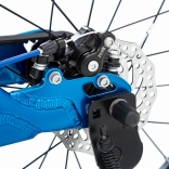 Przedni hamulec szczękowy i tylny tarczowy zapewniają mocne i płynne hamowanie. Ergonomiczne klamki i kierownica są dostosowane do dziecięcych dłoni.