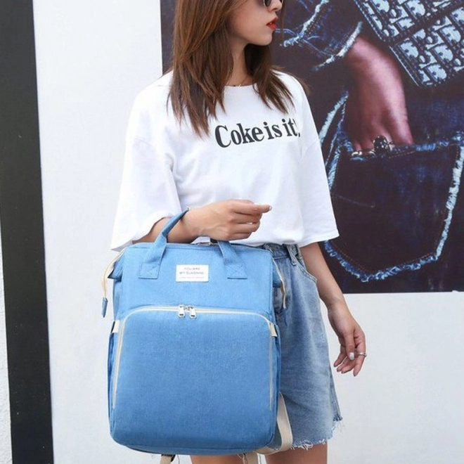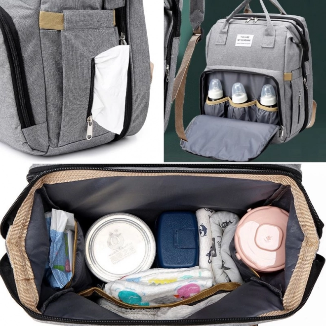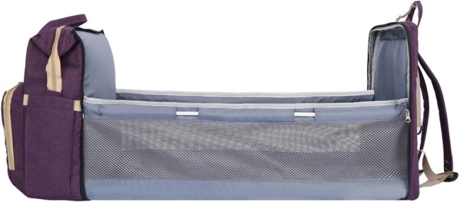 Wielofunkcyjny plecak dla nowoczesnej mamy, który dopasowuje się do intensywnego stylu życia. Dzięki praktycznemu układowi kieszeni oferuje miejsce na kilka butelek z jedzeniem lub piciem dla dziecka, kieszeń na chusteczki nawilżane, z której można korzystać bez wyjmowania całego opakowania, oraz jedną główną komorę do przechowywania większych przedmiotów. Ten plecak jest uniwersalny i zapewnia możliwość odpoczynku dla malucha w podróży w mini turystycznym łóżeczku. Dzięki wielofunkcyjnej konstrukcji plecak może służyć również jako torba lub torba na kółkach.