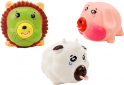 Główną atrakcją tych figurek jest funkcja interaktywna: po naciśnięciu każde zwierzątko wydaje piskliwy dźwięk, a z pyszczka wysuwa się zabawny język. Ta niespodziewana reakcja z pewnością wywoła uśmiech na twarzy każdego dziecka i zachęci do powtarzalnej zabawy.
