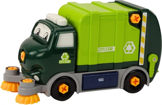 Ta rysunkowa śmieciarka DIY pozwala dzieciom zajrzeć do świata maszyn i mechaniki. Dzięki bezpiecznej zabawkowej wiertarce, śrubokrętowi i wymiennym nasadkom dzieci mogą samodzielnie rozłożyć i złożyć auto, trenując małą motorykę, logiczne myślenie oraz cierpliwość. Przednie szczotki obracają się podczas jazdy, a wraz z dołączonym koszem tworzą autentyczną symulację sprzątania ulic.