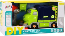 Zabawna i edukacyjna rysunkowa śmieciarka do samodzielnego montażu dla dzieci od 3 lat. Dzięki dołączonej wiertarce elektrycznej i narzędziom dzieci mogą samodzielnie rozkładać i składać pojazd, rozwijając małą motorykę, logiczne myślenie oraz kreatywność. W zestawie znajduje się kosz na śmieci oraz obracające się „szczotki” do realistycznej zabawy w sprzątanie i recykling.