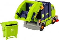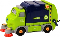 Ta niebieska rysunkowa śmieciarka zapewnia dzieciom godziny zabawy i nauki. Dzięki dołączonej wiertarce na baterie, śrubokrętowi i wymiennym nasadkom mali mechanicy mogą bezpiecznie rozebrać i ponownie złożyć pojazd. Obracające się szczotki czyszczące z przodu oraz dołączony kosz na śmieci nadają zabawie realizmu i uczą znaczenia porządku oraz recyklingu.