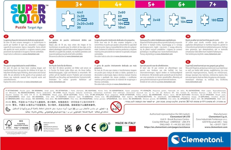 Zaprojektowane specjalnie dla dzieci, puzzle pomagają rozwijać zręczność manualną i umiejętność obserwacji. Jakość materiałów oraz ekskluzywna technika druku gwarantują trwale piękne, żywe i intensywne kolory. Opakowanie zawiera zestaw trzech puzzli z taką samą liczbą elementów i tym samym formatem.