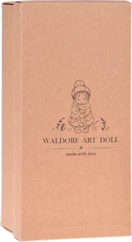 Dostarczana w eleganckim kartonowym pudełku „Waldorf Art Doll – made with love”, gotowa do wręczenia bez dodatkowego pakowania.