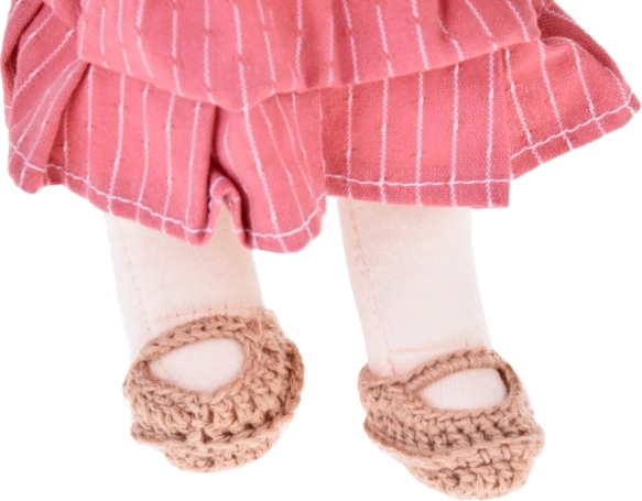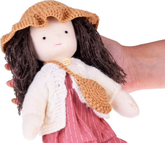 Cała lalka wykonana jest z przyjemnych tkanin o zaokrąglonych kształtach, dzięki czemu jest bezpieczna, miękka i idealna do codziennego przytulania oraz spokojnej zabawy.