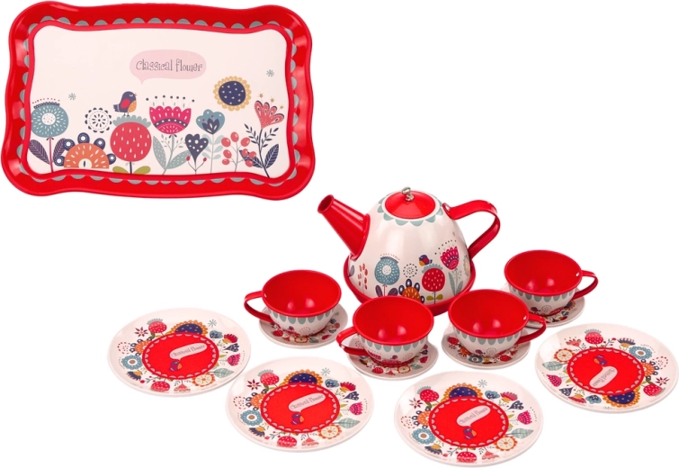Zestaw wykonany jest z trwałych i bezpiecznych materiałów, które zapewniają długotrwałe użytkowanie i bezpieczeństwo podczas zabawy. Dzięki czerwonej barwie i kwiatowym motywom jest wizualnie atrakcyjny, co z pewnością przyciągnie uwagę każdego dziecka.
