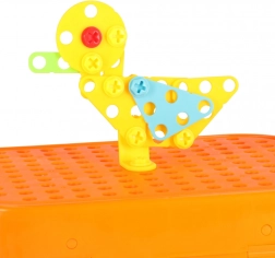 Kolorowe kształty, śrubki i łączniki pozwalają tworzyć obrazki oraz modele przestrzenne – wyobraźnia nie zna granic.
