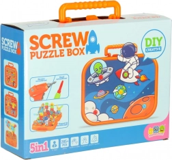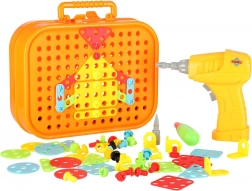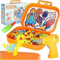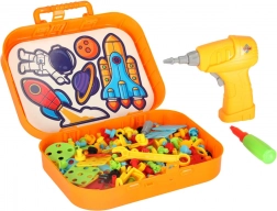Odkryj zabawną i edukacyjną zabawkę dla małych konstruktorów: przenośną mozaikę z elektryczną wiertarką i śrubkami. Dzieci poćwiczą motorykę małą, kreatywność oraz myślenie logiczne podczas budowania modeli 2D i 3D z kosmicznymi motywami. Kompaktowa pomarańczowa walizeczka służy jako schowek i powierzchnia do zabawy, dlatego idealnie sprawdzi się w podróży.
