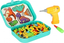 W zestawie znajduje się elektryczna wkrętarka na baterie, śrubokręt, kluczyk oraz bogaty zestaw śrubek i elementów. Motyw dinozaurów i karta inspiracji rozbudzają wyobraźnię i zamieniają każdą budowlę w przygodę.