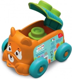Wesoły szczeniak służy nie tylko jako zabawka, ale także jako praktyczne pudełko do przechowywania klocków Clemmy.
