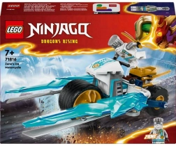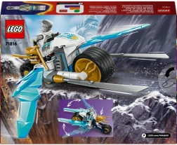 Zane'ów lodowy motocykl jest idealny dla dzieci od siedmiu lat, które chcą przeżyć sceny akcji ze świata Ninjago. Motocykl jest wyposażony w ruchome koła, złote ostrza i tylne zawieszenie. Wyrusz na przygodę z bohaterem Zane'em w nowej turniejowej zbroi i daj się porwać opowieściom z Ninjago.