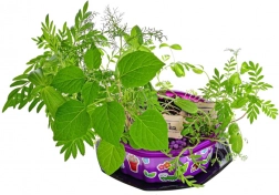 - 4 kolory, 3 paczuszki z nasionami (stokrotka, cynia, kosmos), 1 saszetka włókien kokosowych, 1 pędzelek, 1 doniczka z podstawką, 1 arkusz A4 z naklejkami, 1 tuba brokatu
