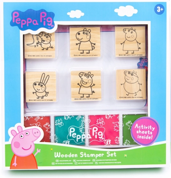 Drewniany zestaw stempli Świnka Peppa to świetny wybór dla dzieci, które kochają tworzenie. Z motywami ulubionych postaci, takich jak Peppa i jej przyjaciele, umożliwia dzieciom tworzenie wesołych i kolorowych odbitek na papierze lub innych materiałach.