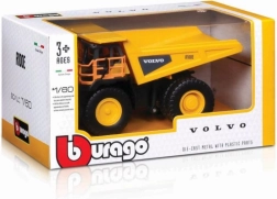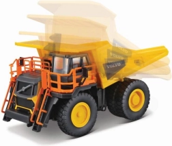 Metalowy model ciężarówki Bburago z imponującym precyzyjnym designem i realistycznymi detalami pojazdu Volvo R100E. Idealny dla kolekcjonerów i fanów maszyn budowlanych.