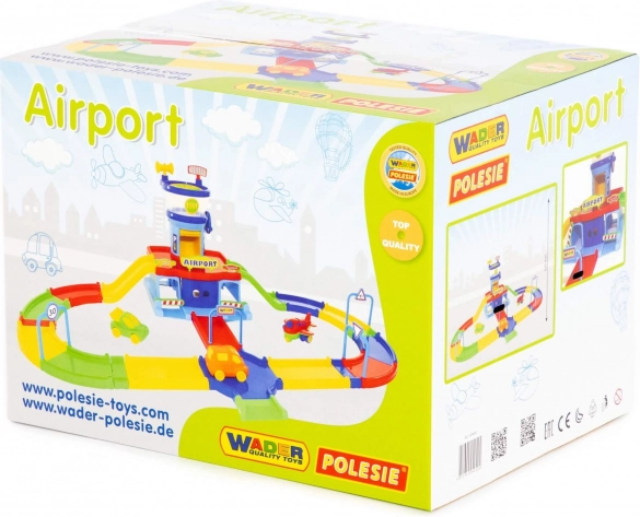 Centralna wieża i budynek lotniska nadają zabawie realistyczny charakter – dzieci mogą kierować ruchem, lądowaniami i odlotami.