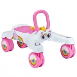Uroczy jeździk z motywem jednorożca to świetny towarzysz codziennej zabawy i treningu stabilności. Dzięki obrotowym kółkom 360° łatwo obraca się w miejscu, a dziecko płynnie przejedzie także przez węższe przestrzenie. Wytrzymała plastikowa konstrukcja zapewnia wsparcie i pewność, a klakson dodaje jeździe frajdy.