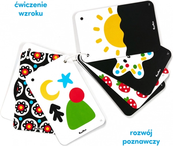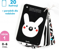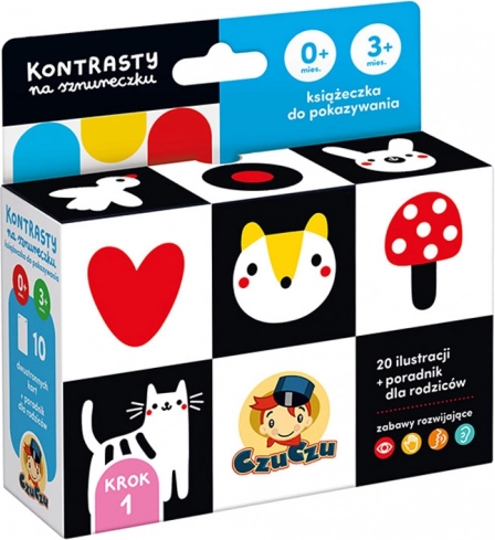 Praktyczna książeczka na sznureczku zawiera 20 ilustracji. Wyraziste, kontrastowe wzory przyciągają wzrok i uwagę Twojego maluszka. Oglądajcie je razem i opowiadajcie o tym, co na nich widzicie. To świetny sposób na wspólne spędzanie czasu z niemowlęciem i budowanie wyjątkowej więzi. Dołączyliśmy przewodnik pełen informacji o rozwoju wzroku niemowląt oraz pomysłów na zabawę.