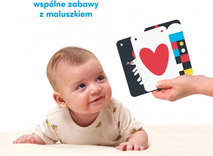 Pracują wszystkie zmysły jednocześnie! Przytul swoje dziecko, mów spokojnym głosem, powoli i płynnie przesuwaj ilustracje przed jego oczami. Maluch chętnie będzie blisko Ciebie i posłucha Twojego głosu.