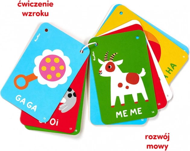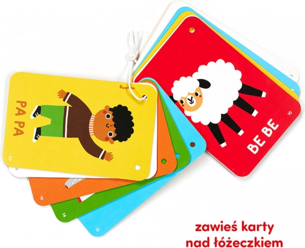 Karty mają 2 dziurki – możesz używać ich pojedynczo, stworzyć efektowną girlandę albo spiąć jednym lub dwoma sznureczkami. Kompaktowy format sprawia, że książeczkę zawsze masz pod ręką w domu i w podróży. Obserwuj reakcje maluszka i odkrywaj jego ulubione wzory, na które patrzy najdłużej.