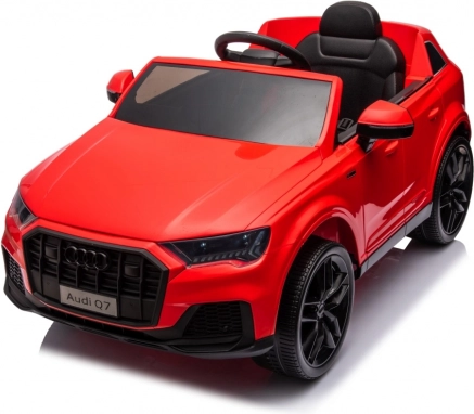 Stylowe dziecięce elektryczne autko AUDI Q7 w dynamicznej czerwieni oferuje małym kierowcom realistyczne wrażenia z jazdy. Dwa mocne silniki 2×35 W, akumulator 12 V / 7 Ah, miękkie koła EVA, wygodne siedzisko z ekoskóry, światła LED oraz rozbudowany panel audio (USB, MP3, Bluetooth, AUX) uzupełnia zdalne sterowanie 2,4 GHz z przyciskiem bezpieczeństwa Stop i funkcją płynnego startu.