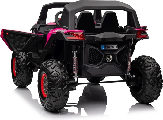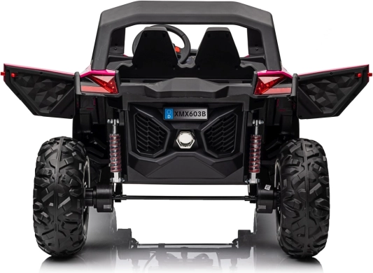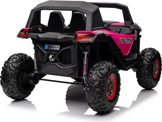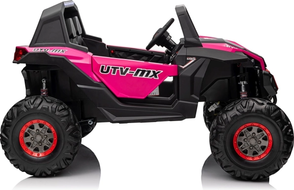 Dziecięcy pojazd terenowy UTV-MX to idealny wybór dla młodych odkrywców, oferujący świetne wrażenia z jazdy off-road. Pojazd wyposażono w mocne silniki 4x75W, które pozwalają łatwo pokonywać różne nawierzchnie. Dwa akumulatory 12V/7Ah zapewniają długi czas jazdy.