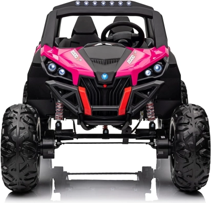 Bezpieczeństwo gwarantuje zdalne sterowanie z trzema prędkościami i przyciskiem awaryjnego zatrzymania. Pojazd wyposażono w światła LED, które zapewniają widoczność i realistyczny wygląd. Dzieci mogą słuchać muzyki dzięki panelowi audio z MP3, radiem FM, USB i innymi wejściami.