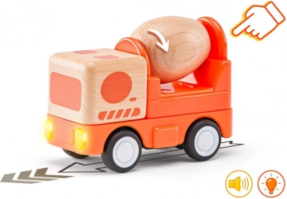 Drewniana betoniarka zachwyci małych budowniczych realistycznymi dźwiękami i efektami świetlnymi. Idealna dla dzieci od 18 miesięcy, zapewnia zabawę i rozwój umiejętności.