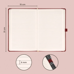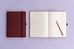 - Bordowe wykończenie nadaje notesowi nutę elegancji i wyrafinowania.
