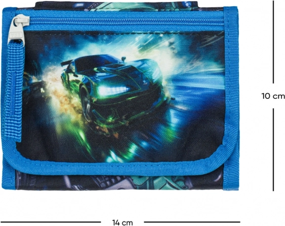Wyraź swoją wyścigową pasję z portmonetką, która ma motyw wyścigowego auta na przedniej stronie.