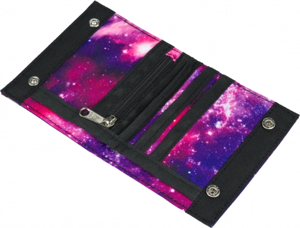 Szukasz portfela, który jest praktyczny, a jednocześnie świetnie wygląda? Motyw galaxy doda Twojej stylizacji charakteru, a kompaktowe wykonanie zmieści się do każdej kieszeni lub plecaka. • Miejsce na banknoty