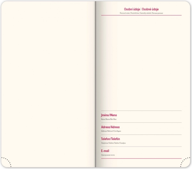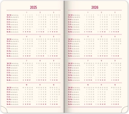 Dzięki kompaktowemu formatowi 9 × 15,5 cm terminarz jest łatwy do przenoszenia i doskonale mieści się w każdej torbie lub torebce.