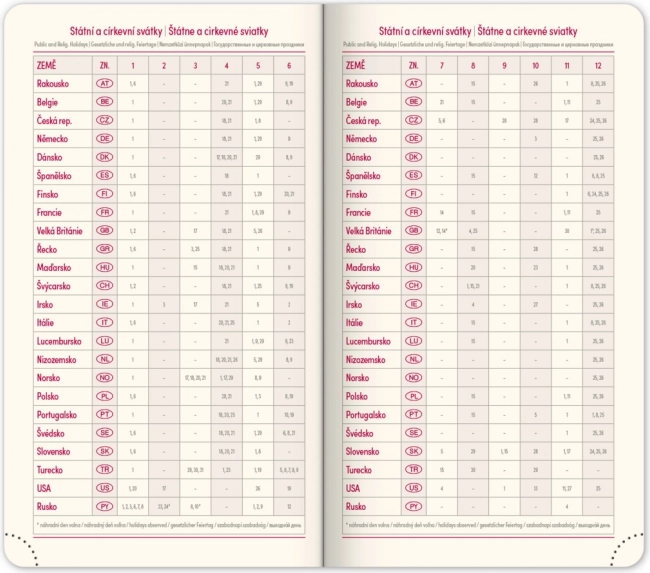 - Przegląd świąt Republiki Czeskiej i Republiki Słowackiej oraz świąt międzynarodowych