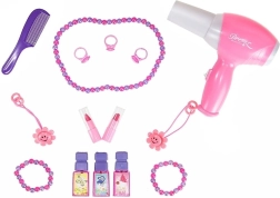 Dzieci mogą bawić się suszarką, grzebykiem, flakonikami perfum, koralikami, bransoletkami, pierścionkami i wieloma innymi dodatkami.