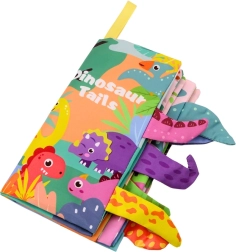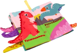 Odkryj magię tego kolorowego tekstylnego leporela pełnego dinozaurów. Każda strona jest bogato ilustrowana i zapewnia wrażenia wzrokowe oraz dotykowe dzięki wystającym ogonkom dinozaurów, które wspierają rozwój sensoryczny dzieci. Mali czytelnicy mogą także uczyć się angielskich słów dzięki nazwom dinozaurów umieszczonym na stronach.