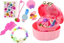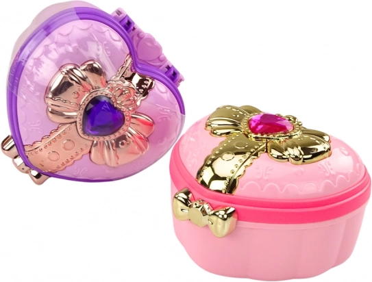 Elegancki kuferek w kształcie serca ozdobiony jest złotymi detalami oraz dużym, kolorowym sercem na wierzchu, które zachwyci każde dziecko. Zestaw zawiera: