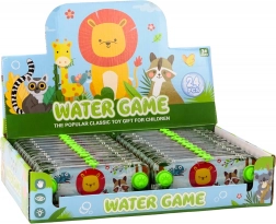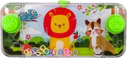 To klasyczna wodna gra zręcznościowa z motywem lwa, często spotykana jako mała prostokątna zabawka. Jej mechanika jest prosta, ale bardzo wciągająca. Gra ma prostokątny kształt, dzięki czemu wygodnie leży w dłoniach. Na przedniej stronie znajduje się motyw lwa, który nadaje jej charakterystyczny wygląd. Po prawej i lewej stronie urządzenia są dwa zielone przyciski ozdobione lwią łapą. Te przyciski są kluczowe dla rozgrywki i są łatwo dostępne dla palców gracza. Pośrodku, w przezroczystym zbiorniku wypełnionym wodą, znajdują się kolorowe kółka, które swobodnie unoszą się w cieczy. Na dnie gry wystają dwa bolce, na które należy nadziać kółka. Te bolce są celami, które gracz musi trafić kółkami.