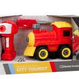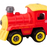 Ta czerwono‑żółta rozbieralna lokomotywa zamienia zabawę w kreatywny warsztat – dzieci samodzielnie składają pojazd za pomocą śrubokręta, a następnie mogą nim sterować wiertarką pełniącą funkcję pilota zdalnego sterowania. Realistyczne odgłosy pociągu i silnika potęgują wrażenia z jazdy i pobudzają wyobraźnię.