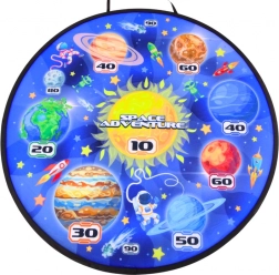 Kolorowa materiałowa tarcza Space Adventure z rzepem zapewnia bezpieczną zabawę bez ostrych grotów. Wyraźnie oznaczone strefy z punktami wspierają rywalizację i naukę liczenia.