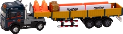 Realistyczny zestaw ciężarowy w skali 1:24 ucieszy małych kierowców i kolekcjonerów. Oferuje otwierane boczne drzwi naczepy, napęd, efekty świetlne oraz realistyczne dźwięki silnika i cofania. W zestawie znajdują się pachołki drogowe i bariery do tworzenia placów budowy lub scenariuszy drogowych. Idealny do rozwijania wyobraźni i nauki przepisów ruchu drogowego.