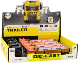 Ten niebieski zestaw ciężarowy z przyczepą w skali 1:24 wiernie odwzorowuje prawdziwy pojazd TIR. Naczepa ma otwierane boczne drzwi dla łatwego trybu „załadunku i rozładunku”, na platformie znajdują się dwie beczki jako ładunek. Model wyposażono w światła oraz dźwięki rozruchu silnika i cofania, co zwiększa autentyczność zabawy.